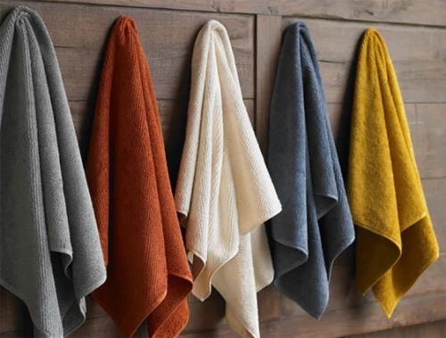 Terry towels woven for comfort and quick absorption. Ideal for everyday use, combining durability with luxury.